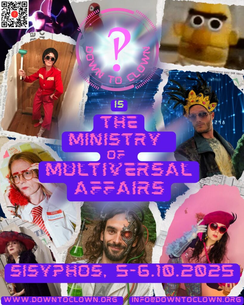 Down to Clown presents: A transit through infinite absurdity — The Ministry of Multiversal Affairs. Let us guide you to discover Sisyphos as you’ve never seen it before: twisted time, reshaped by cosmic bureaucracy, remixed across countless universes. Nothing is as it seems, and everything is yours to explore.