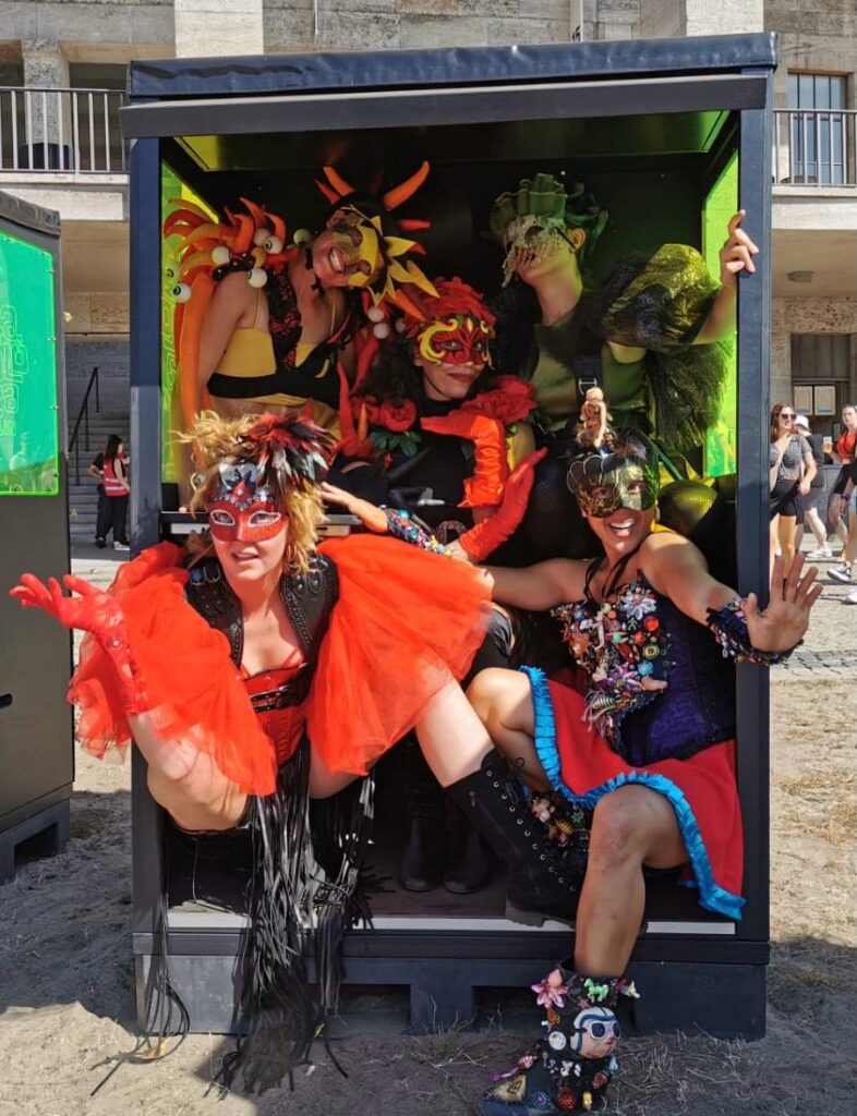On October 3, 2024, the cabin crew of Sisyphos Entlines flight SE24 got lost in a space-time anomaly and was scattered across time, space, and multiverses. After (or while, or before) meeting strange new tribes of alternate realities and freakish futures, they were (or are or will be) guided back to Sisyphos by the sound of an interdimensional bass drum. Reunited as Fun Tribe, the seven fearless time travelers welcome you into a world of freedom, fun and funkiness.
